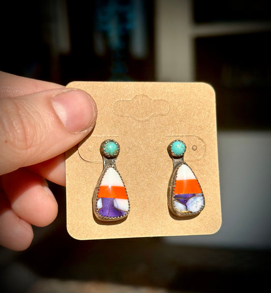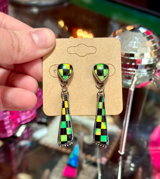 It’s SHOWTIME! Green Opal Checkered Dangle Earrings