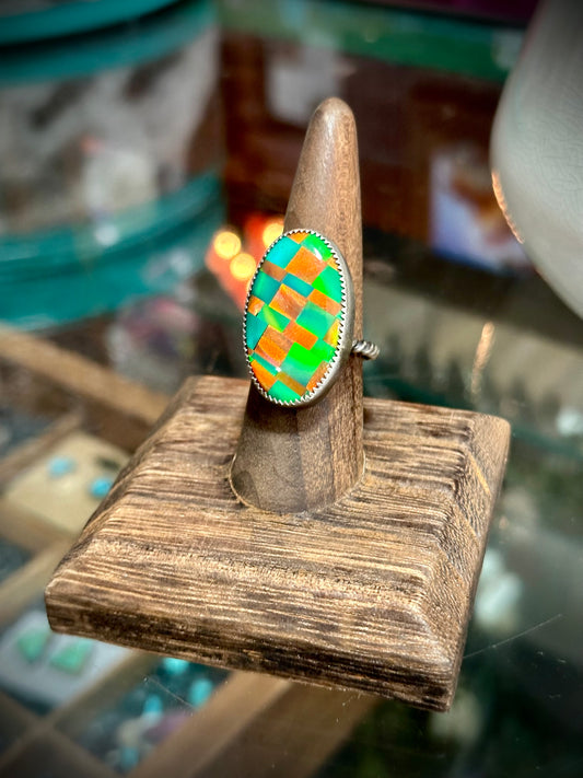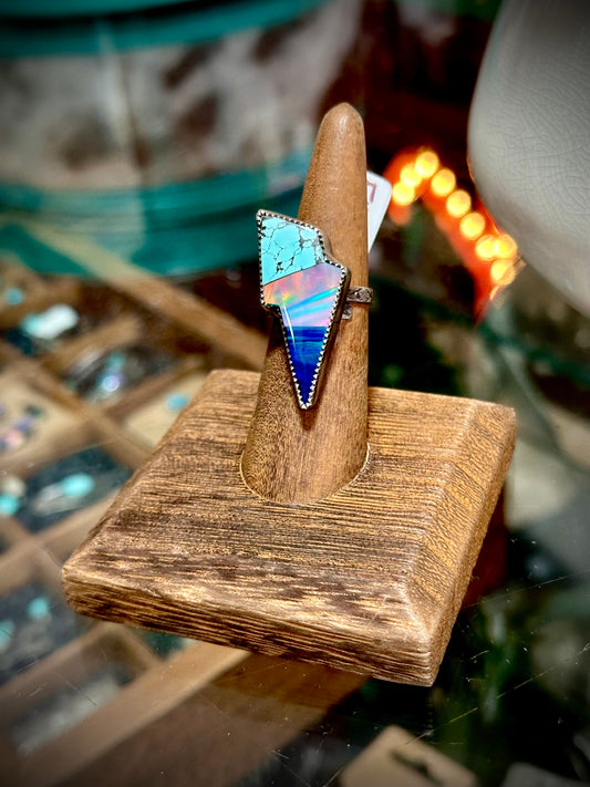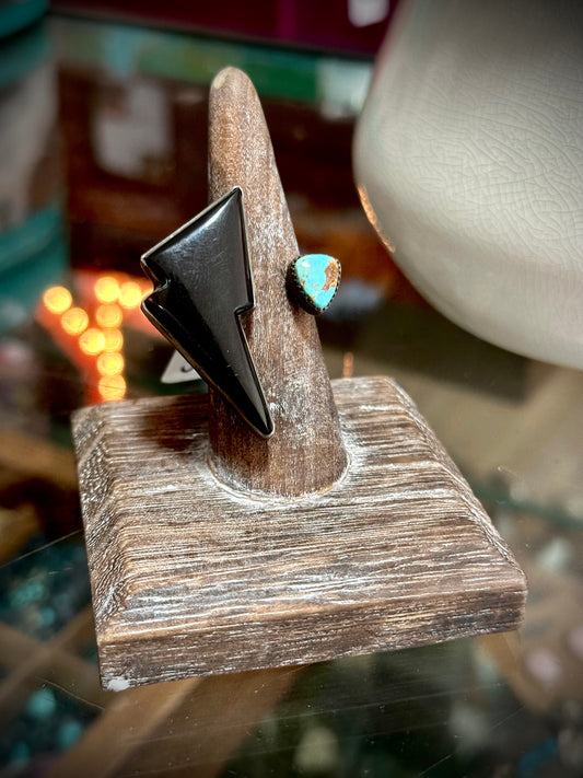Sold outBlack Onyx and Turquoise Bolt Ring