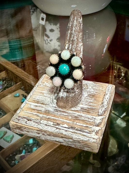 Opal/Turquoise Flower Cluster Ring