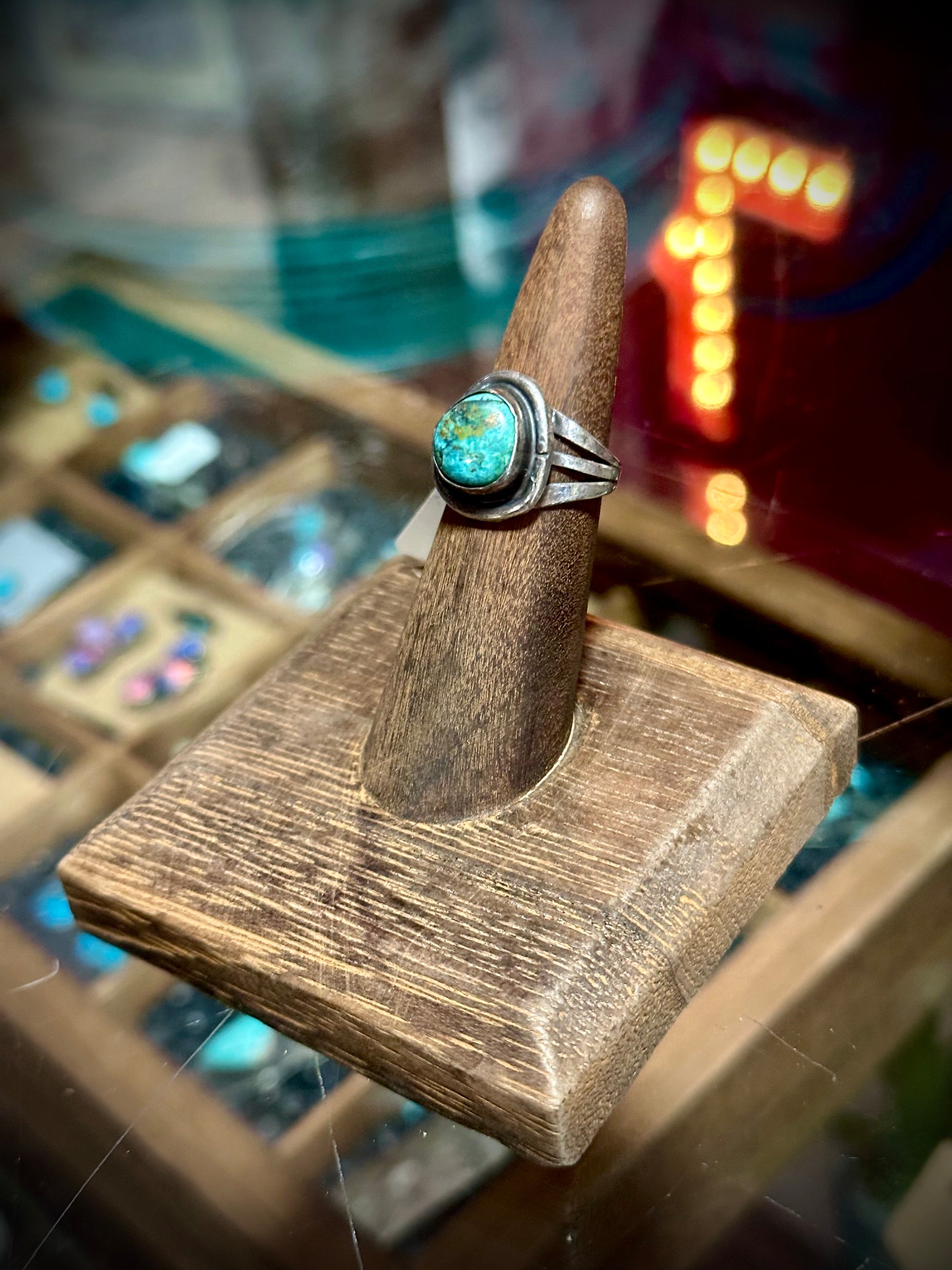 Cute little vintage turquoise ring, unstamped but is handmade. Size 5